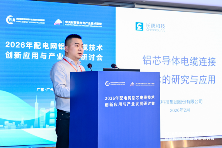 2月4日,由国家能源互联网产业及技术创新联盟、中关村智能电力产业技术联盟主办的2026年配电网铝芯电缆技术创新应用与产业发展研讨会在广州顺利召开。长缆科技受邀出席本次行业盛会,携多款核心电缆附件产品亮相展会,并由中低压产品事业部刘正发表《铝芯导体电缆连接技术的研究与应用》主题演讲,与行业同仁共探技术创新与产业发展新路径。