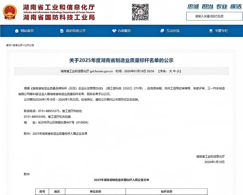 “湖南省制造业质量标杆企业”是由湖南省工业和信息化厅认定、在质量管理方面具有示范效应的企业奖项,彰显企业通过技术创新、管理创新和商业模式创新,运用先进适用的质量管理方法和质量工程技术,在系统提升产品和服务质量的实践过程中形成的可借鉴、可推广的质量管理成果。此奖项的设立旨在发挥质量标杆示范引领作用,引导广大企业学习实践标杆经验,提升质量发展效益,推动湖南省制造业高质量发展。