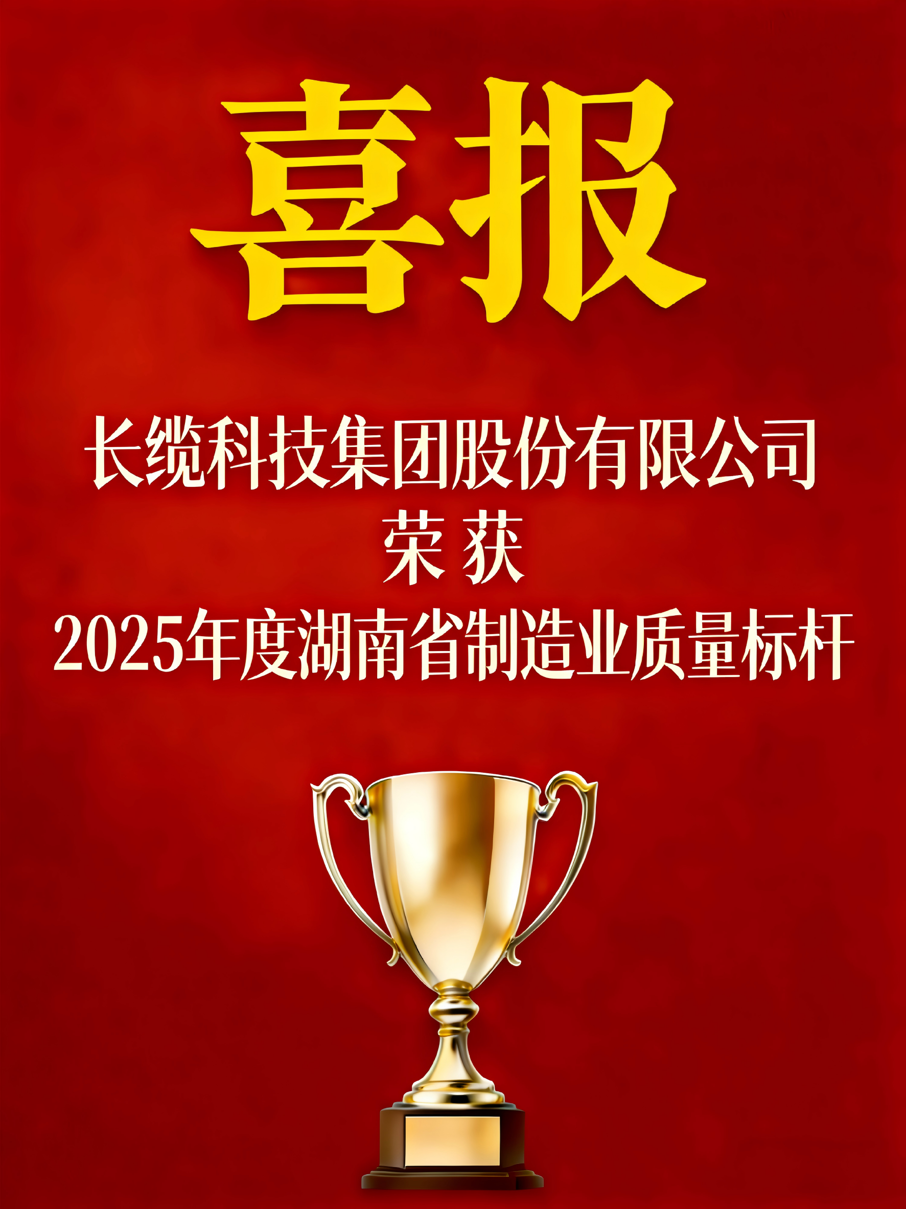 喜报!长缆科技荣获“湖南省制造业质量标杆”殊荣